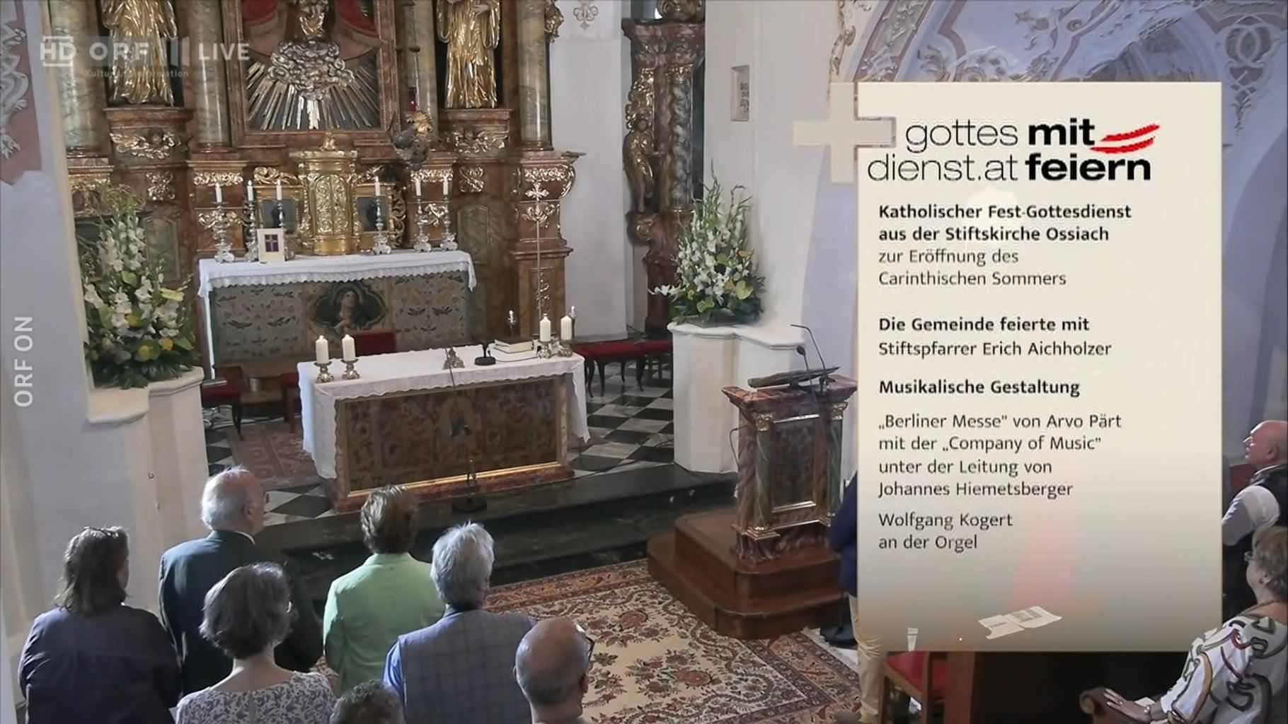 ORF III hat am 06. Juli den katholischen Gottesdienst aus Ossiach, der im Rahmen des Carinthischen Sommers stattgefunden hat, übertragen. Es wurde die Kleine Orgelmesse von Joseph Haydn als neues Werk von Alyssa Aska uraufgeführt. Es kam aber auch Orgelmusik von Haydn, Mozart und Albrechtsberger bei der Eröffnung des Carinthischen Sommers 2025 zur Aufführung. Die Messe wurde vom Stiftspfarrer Dechant Mag. Erich Aichholzer zelebriert und der Intendantin des Carinthischen Sommers Nadia Kayali ein begleitet.