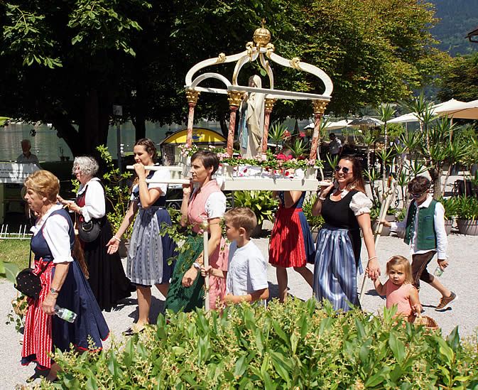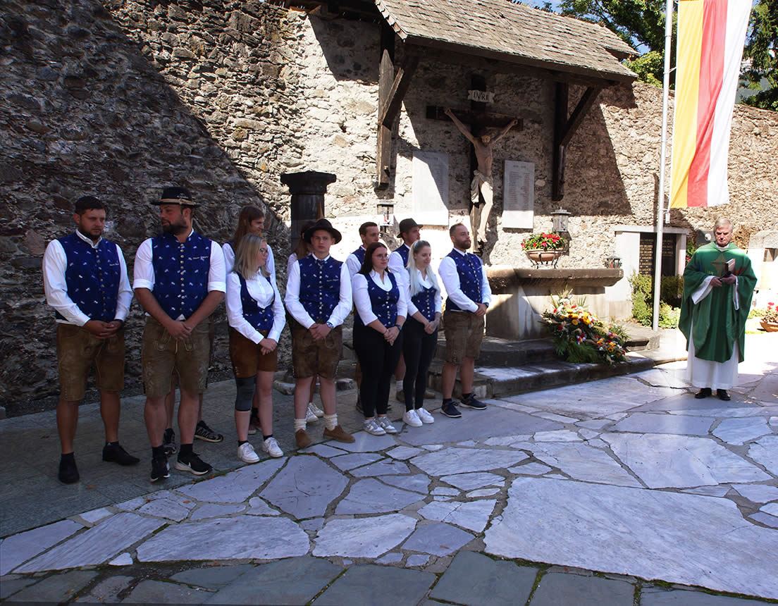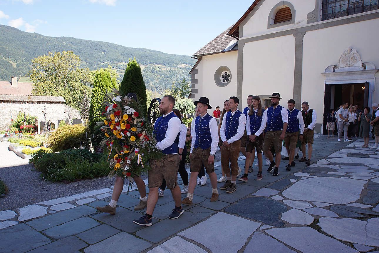 Zur "Kirchtagsmesse", die von Stiftspfarrer Mag. Erich Aichholzer zelebriert wurde, fanden sich auch der Bürgermeister Gernot Prinz und die Ossiacher Dorfjugend ein. Nach der heiligen Messe fand beim Kriegerdenkmal durch die Ossiacher Dorfjugend eine Kranzniederlegung statt. Danach wurde auf der Wiese zwischen der Kirche und dem Alban-Berg-Saal beim Kirchtags- Frühschoppen gemeinsam gefeiert.