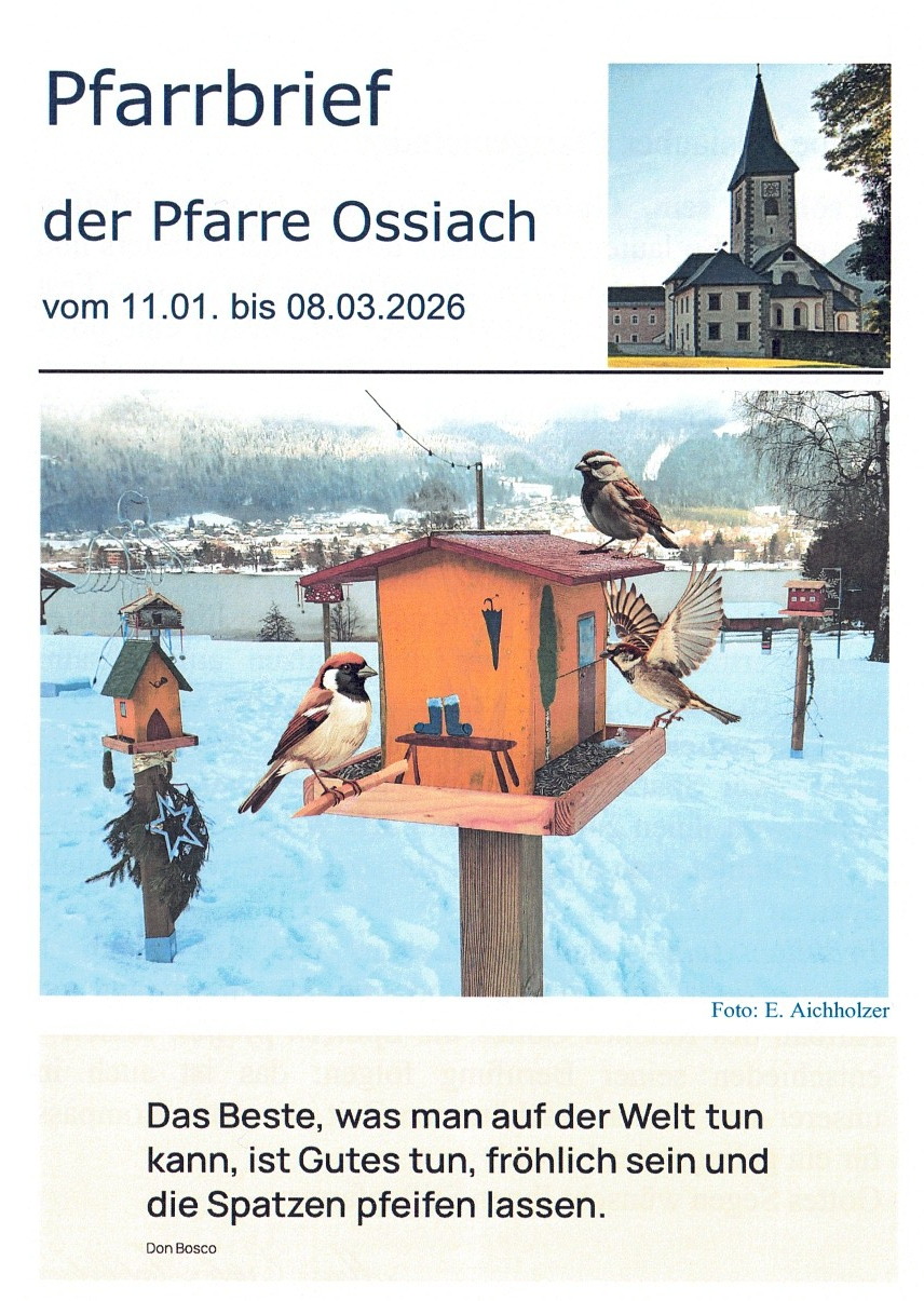 Fotos der Veranstaltung finden Sie in der anschließenden Bildergalerie. Die Rechte für die Fotos liegen bei der Pfarre Ossiach. Grundsätzlich erfolgte die Zustimmung der Abgebildeten zur Veröffentlichung der Fotos auf der Homepage der Pfarre Ossiach. Sollten abgebildete Personen trotzdem die Veröffentlichung nicht wünschen, mögen Sie dies dem Pfarramt per E-Mail oder schriftlich mitteilen. Die Adressen finden Sie im Impressum.